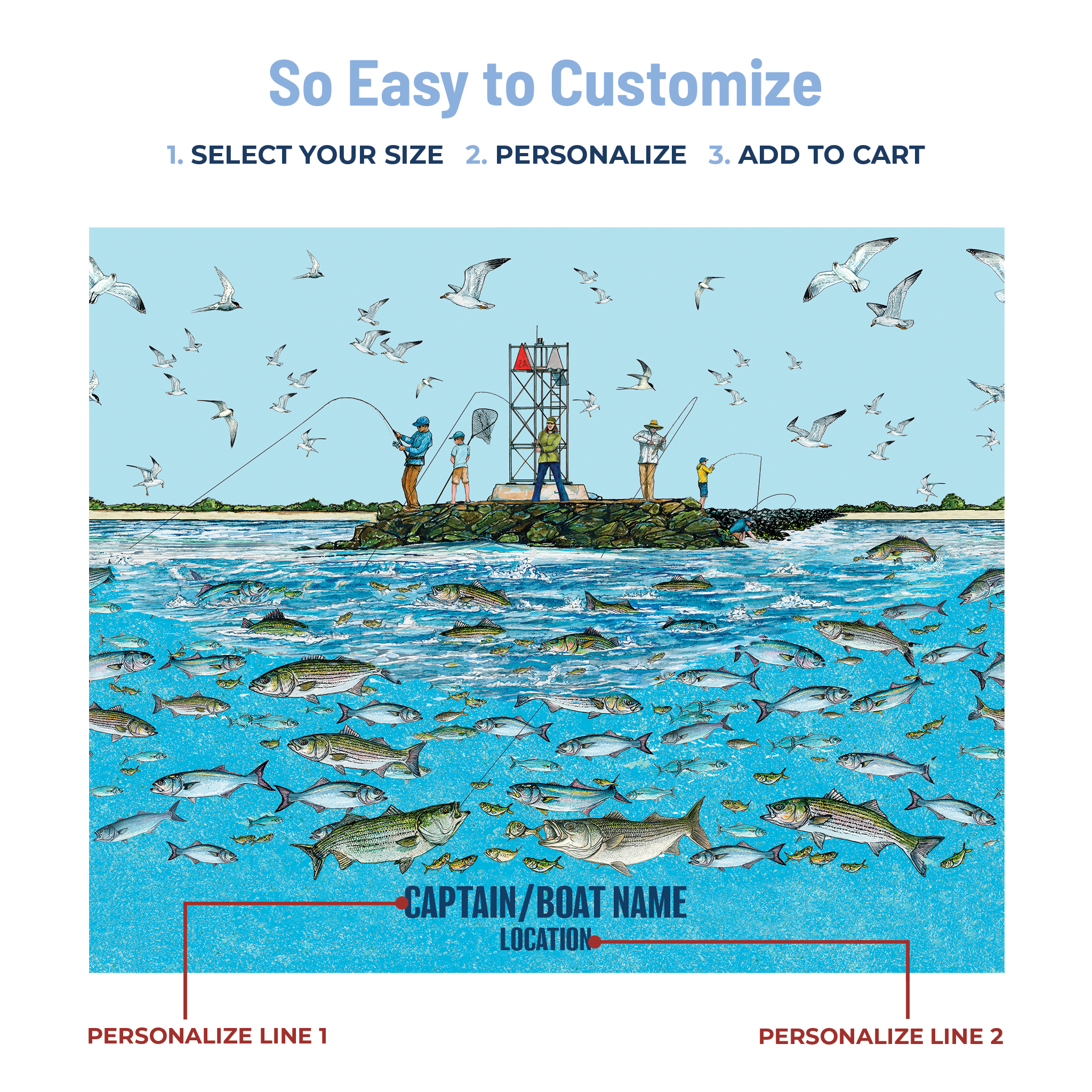 Did you know jetties play a vital role in creating habitats for various fish species, offering anglers prime fishing spots? Personalize it with two lines of text to create a unique piece that reflects your love for fishing and the allure of the jetty experience.