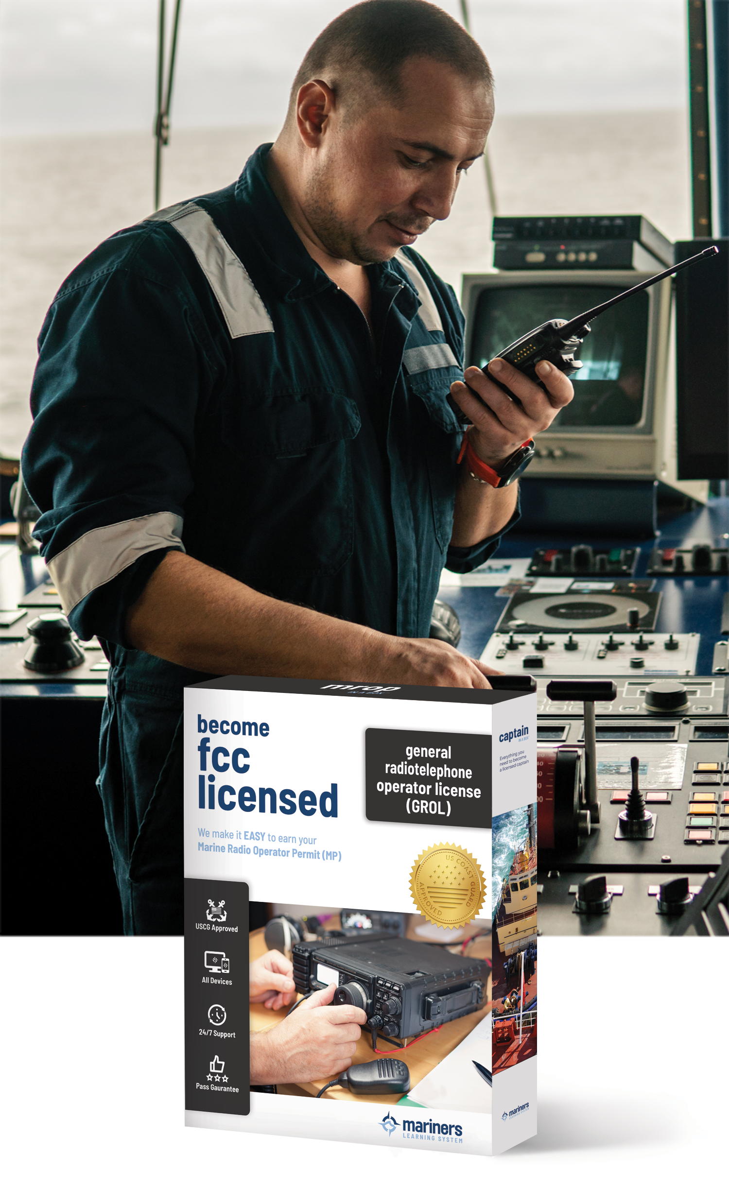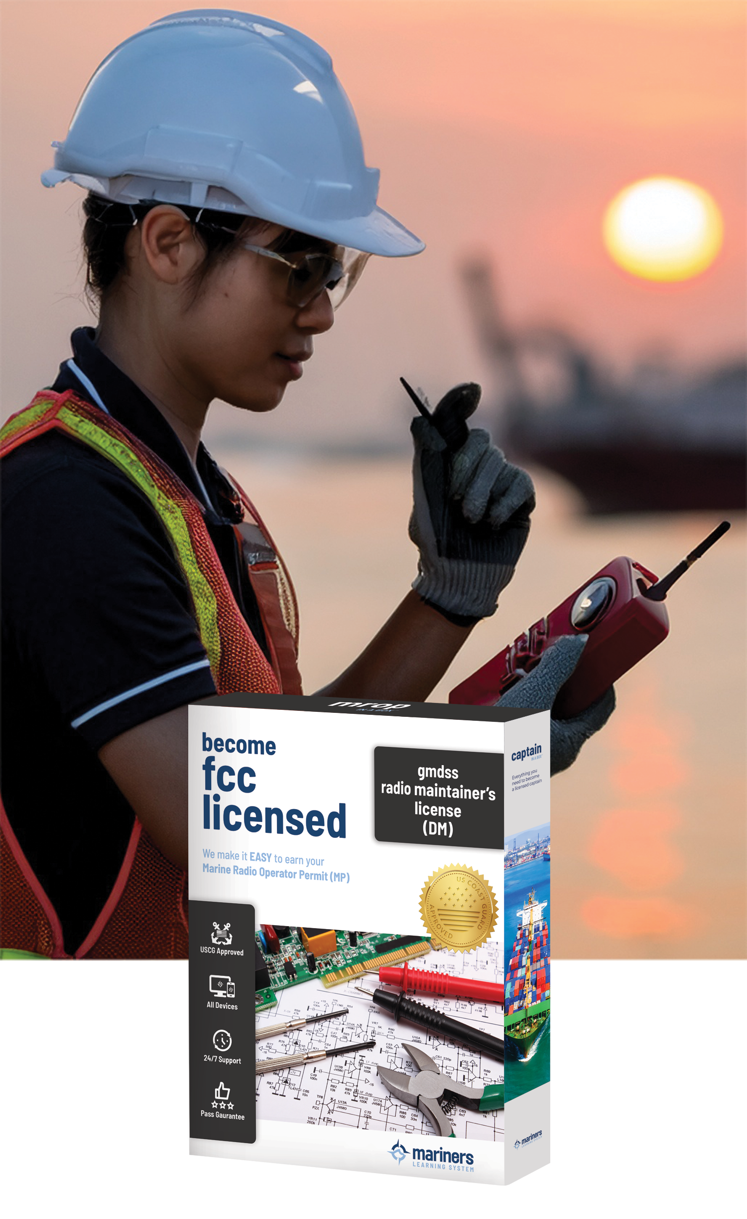 Expert in Onboard Repairs & High-Power Communications: This license qualifies you to perform at-sea maintenance and repairs on GMDSS equipment, ensuring critical maritime communication systems remain operational. It also grants all privileges of the General Radiotelephone Operator License (PG) and the Marine Radio Operator Permit (MP).